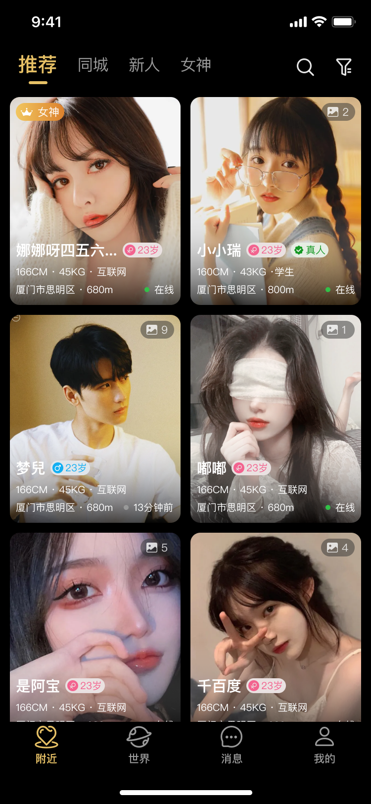 追求高端品质生活的你一定要有高端品质的社交圈。世界动态会每天向你推荐精彩、高端品质的Lifestyle和那个TA,享受着高端品质Lifestyle的同时也不能忘记脱单。如果刚好有你喜欢的TA,那么邀请TA来一场说走就走旅行、约会。享受的同时千万别忘了分享你自己的高端品质Lifestyle。